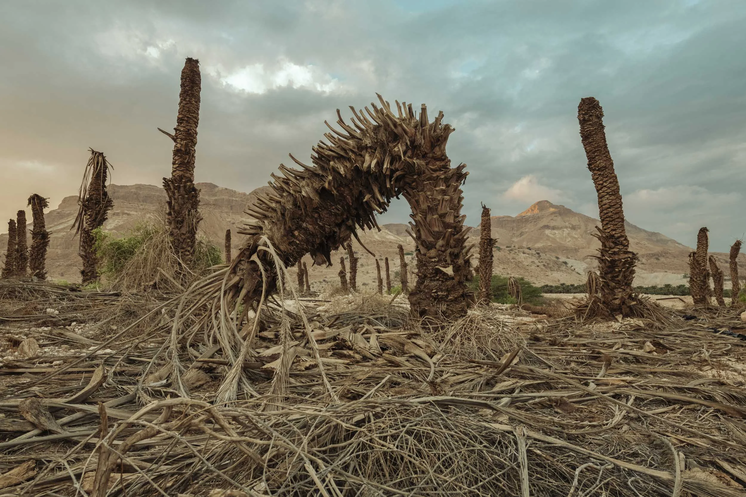 A dried-up palm plantation near the Dead Sea, Israel.